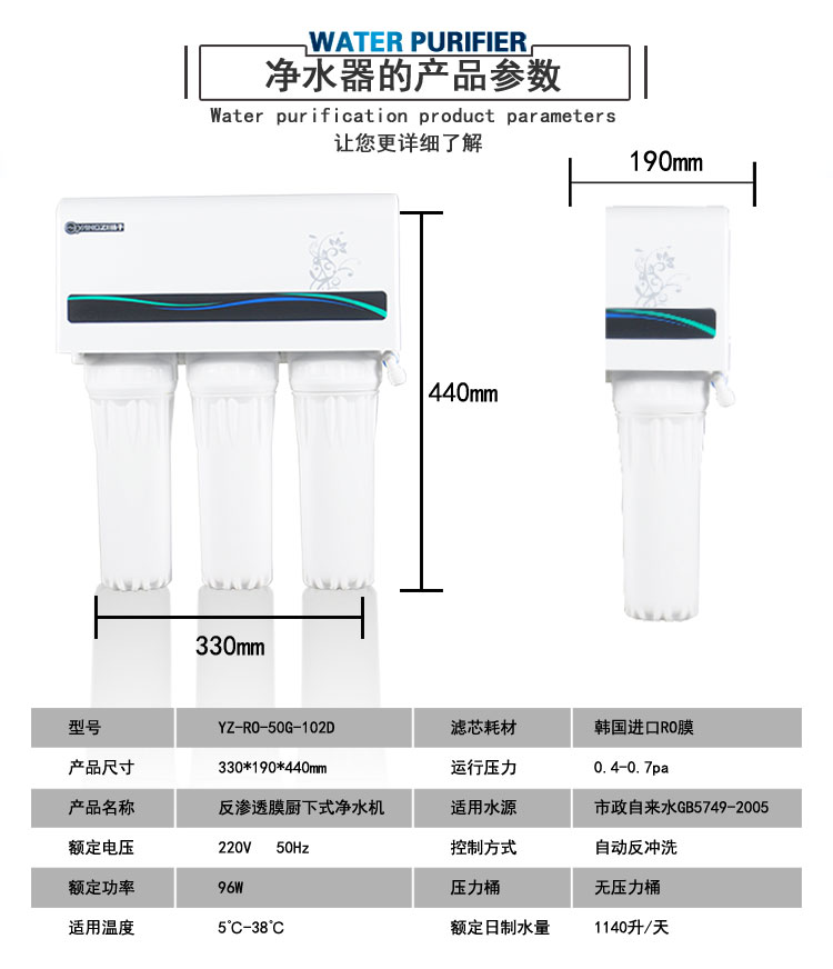 ●濾料組合:PP棉+顆?;钚蕴?/span>+壓縮活性碳+RO膜+后置活性碳